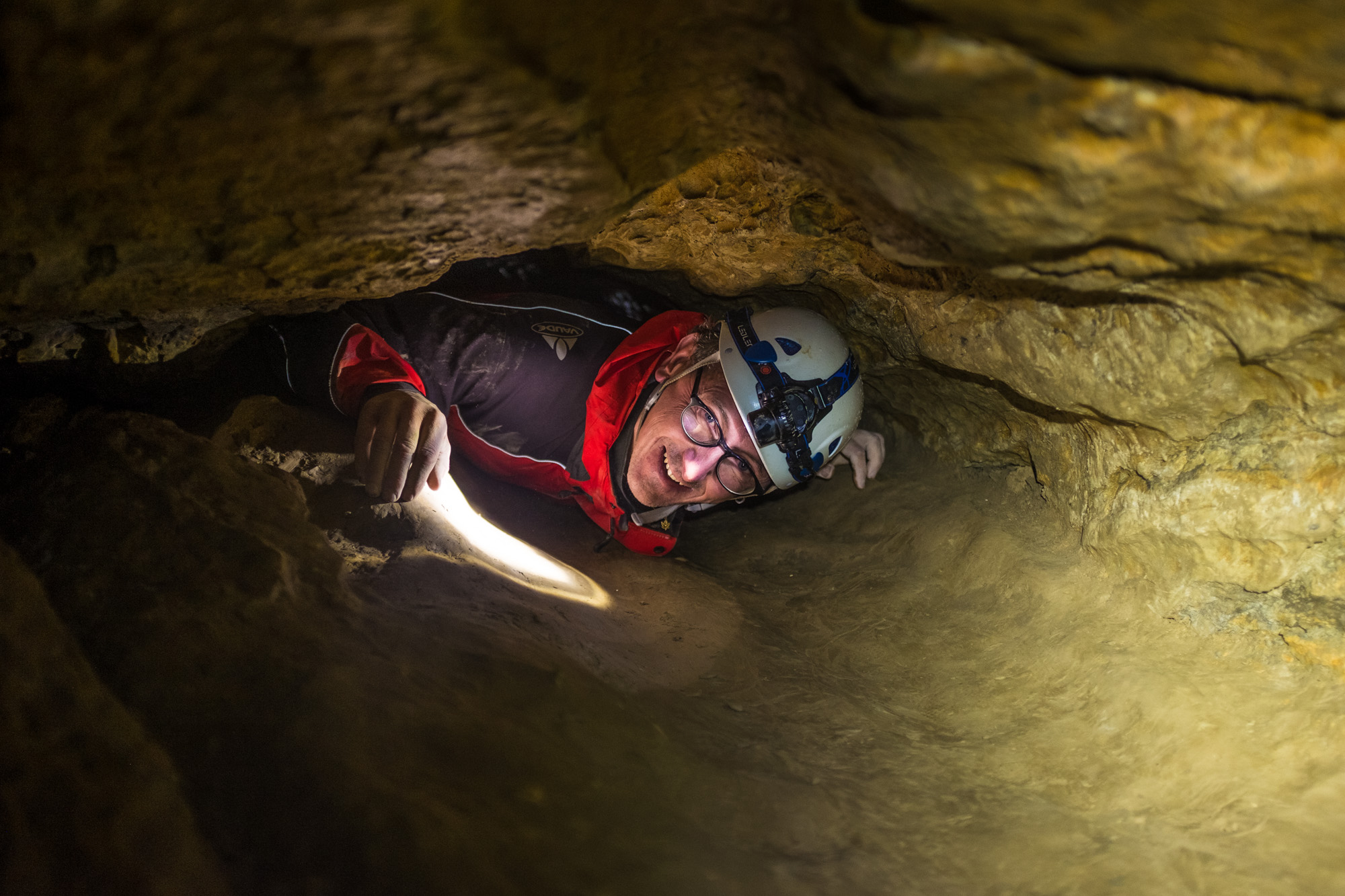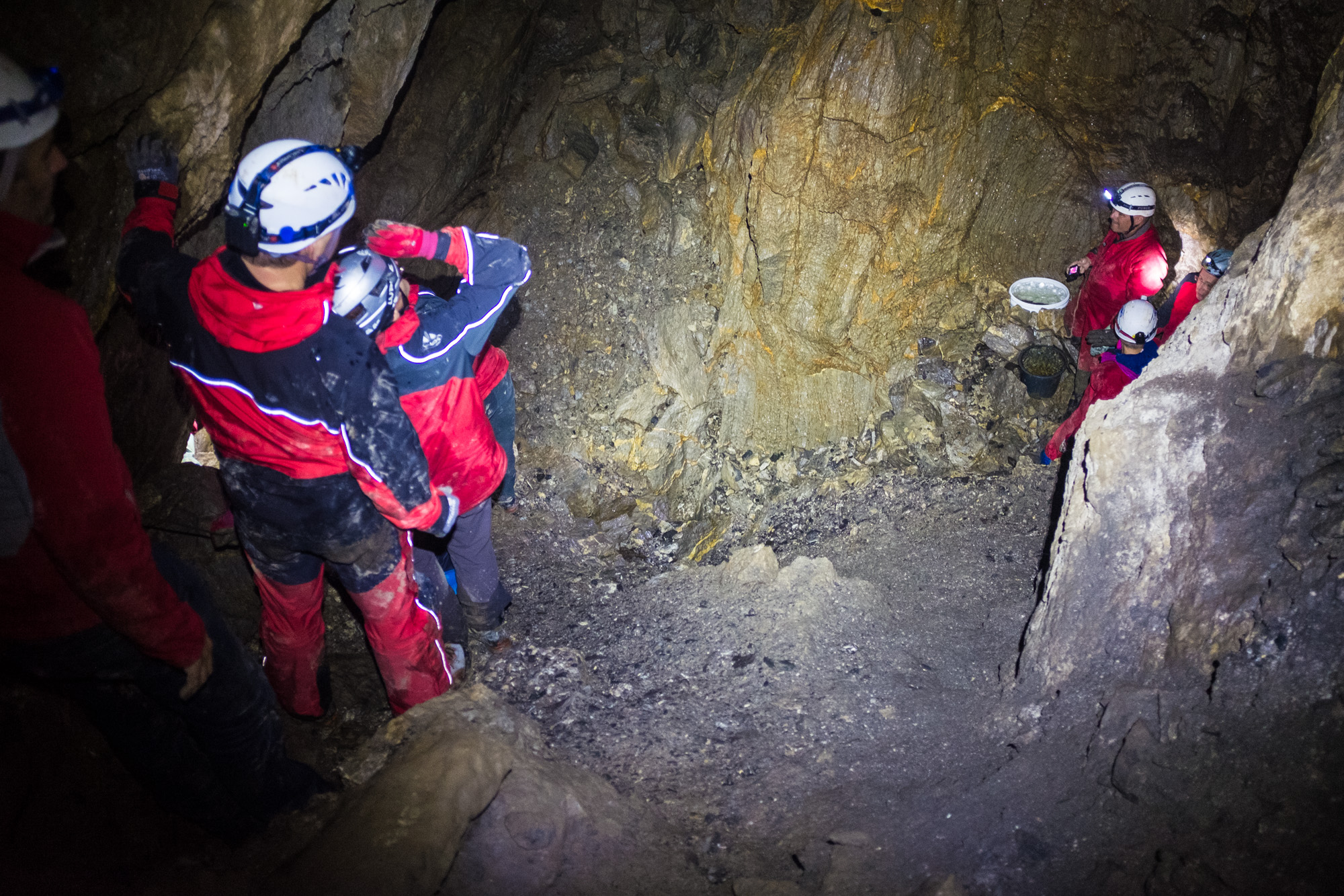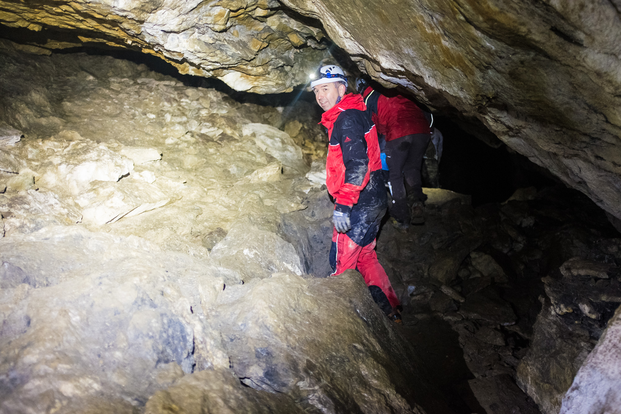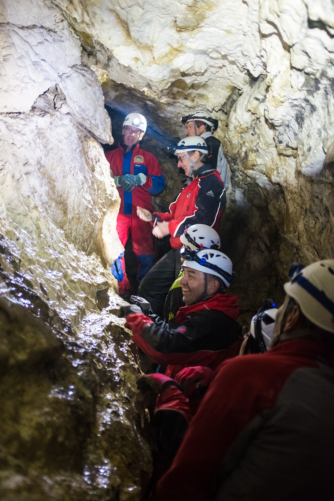 Unter der Fachkundigen Führung von Höhlenführer Wilfried Breuss konnten wir nun die große Freschenhöhle befahren. Sie ist etwa 700m lang und wir waren 2,5h drinnen. Neben vielen schmalen Gängen auf denen man nur mit Händen und Füßen vorwärts kommt gibt es auch einige große Räume, unter anderem einen Dom mit etwa 20m Höhe. Das Highlight am Ende der Höhle war ein sehr enger Durchgang durch den man sich gerade so durchzwängen kann. Wir haben die Höhle anschließen durch den schmalen Seitenausgang verlassen.