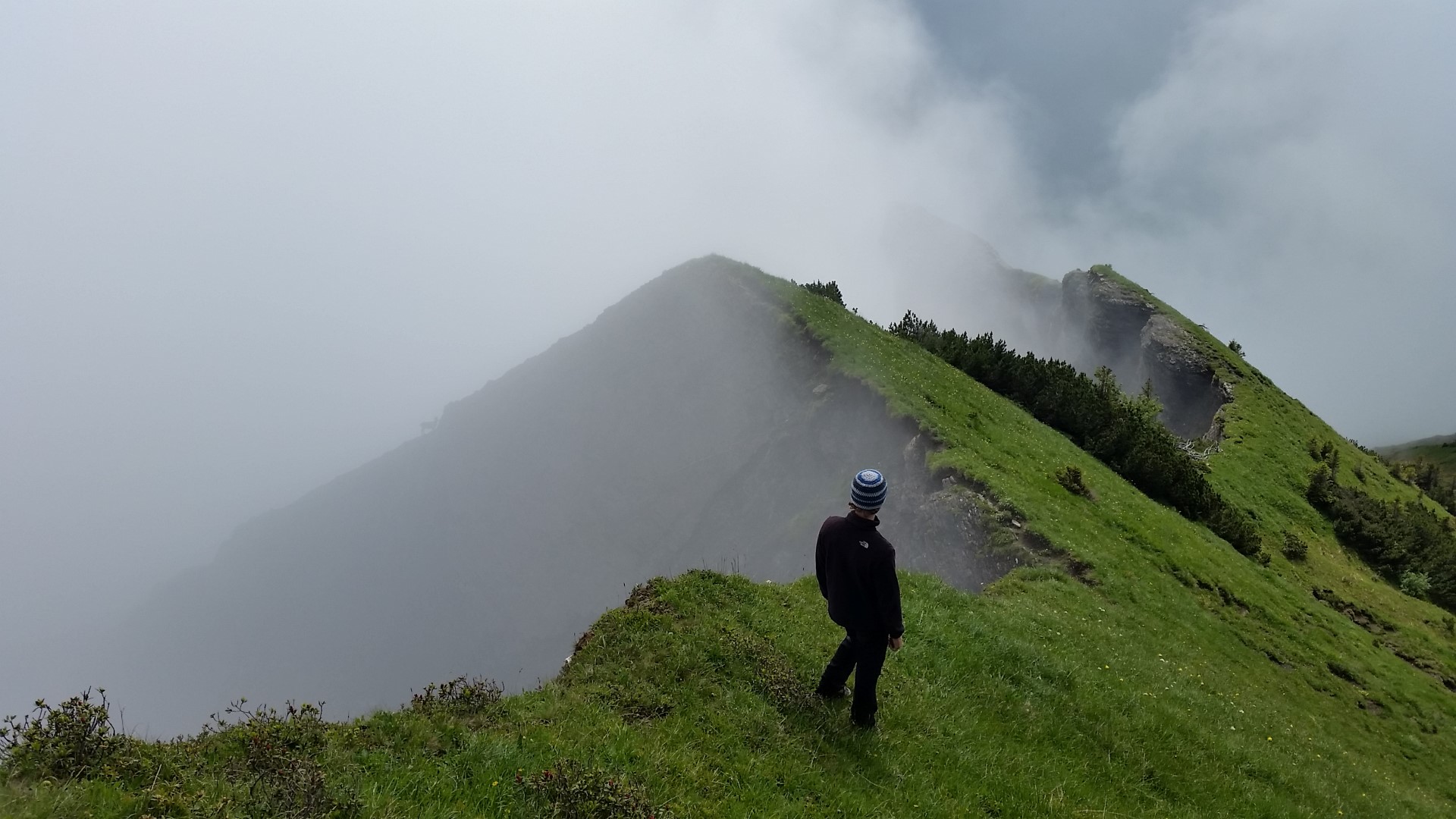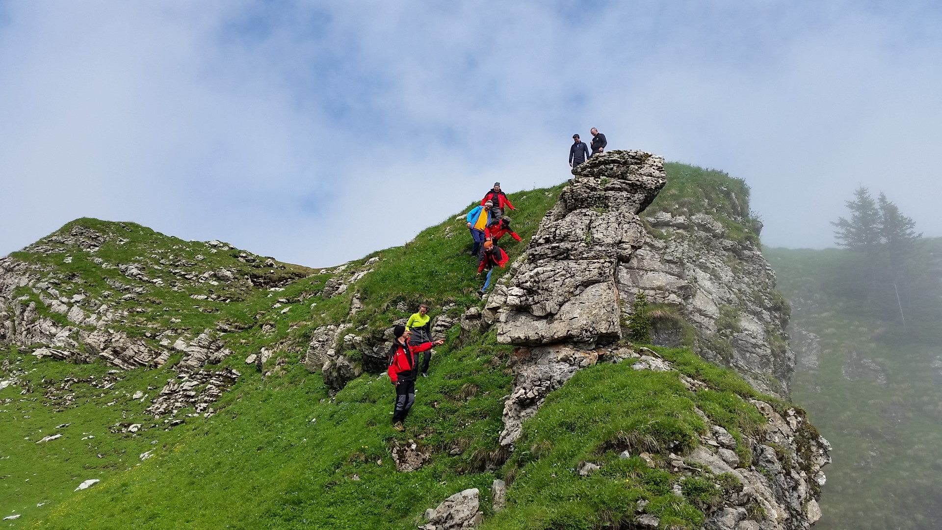 Am nächsten Morgen ging es an der kleinen Freschenhöhle vorbei Richtung Gipfel des Hohen Freschen, das Wetter war teilweise sonnig und Recht angenehm. Zurück am Freschenhaus fand am Sonntag Mittag die Bergemesse an der Freschenkapelle statt. Anschließend ging es wieder runter ins Tal.