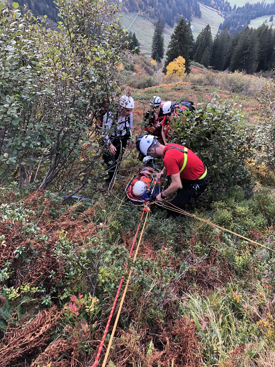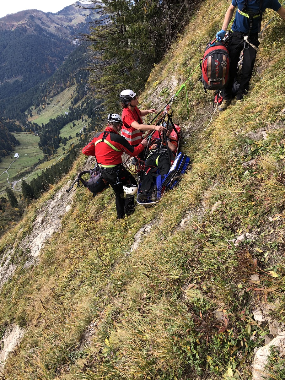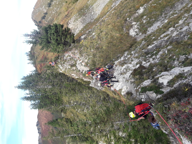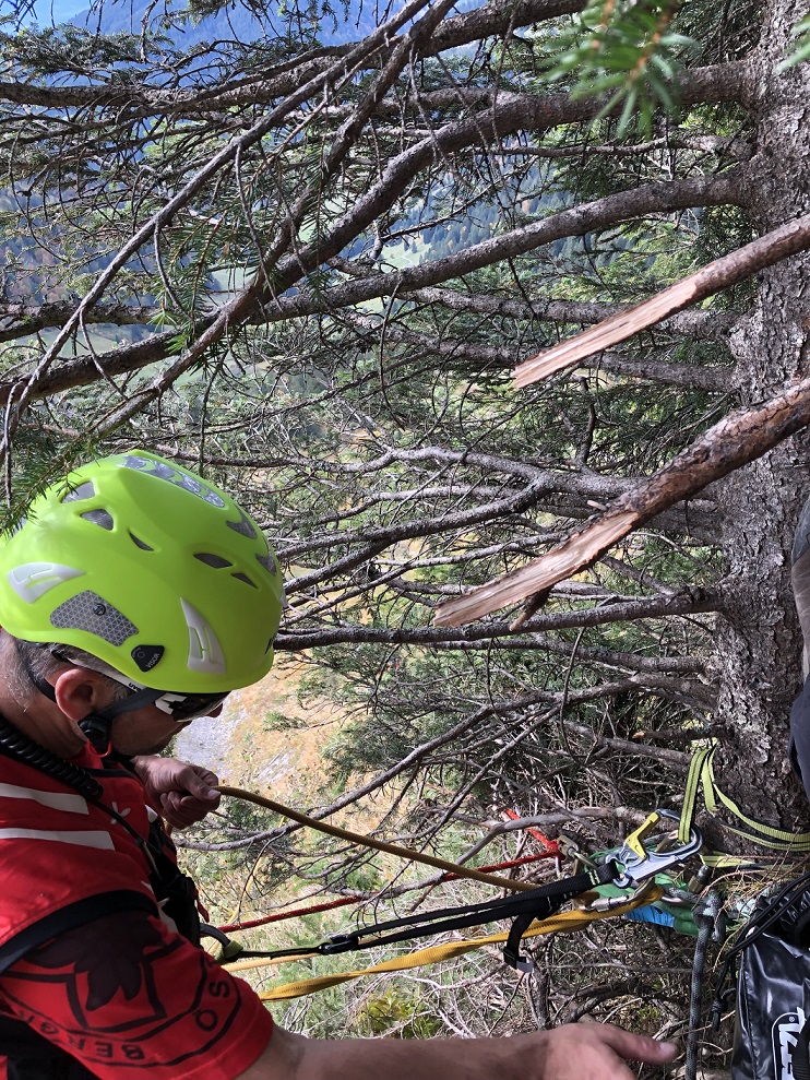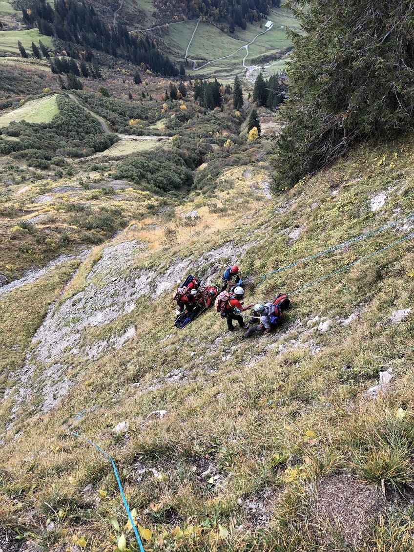 Die Abseilbergungen mit den Verletzten der Unfallstelle 1 und 2 erwies sich als schwierig und lang, da teilweise durch dichtes Gebüsch geborgen werden musste, jedoch wäre eine Bergung aufwärts und dann über den Grat zum Furkajoch noch aufwändiger gewesen.
