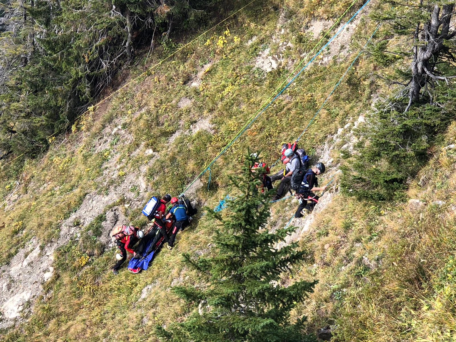 Parallel konnte der abgestürzte Radfahrer mittels Einmannbergetechnik geborgen werden. Die eingeklemmte Person wurde derweilen von der Feuerwehr versorgt.