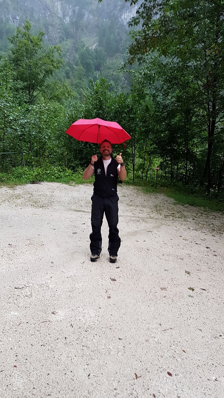 Harald Poppa und Bernhard Barbisch ließen es sich trotzdem nicht nehmen und reisten Martin Burger nach Hinterstoder nach. Frei nach dem Motto „es gibt kein schlechtes Wetter, sondern nur schlechte Bekleidung (bzw. wozu gibt es einen Regenschirm)“ erfolgte am Freitag der Aufstieg zum Stützpunkt des Ausflugs, dem Prielschutzhaus auf 1420m. (Foto 1 und Foto 2)