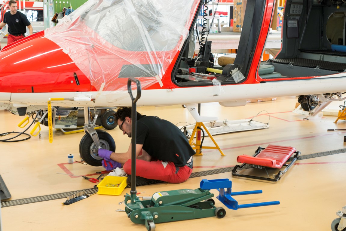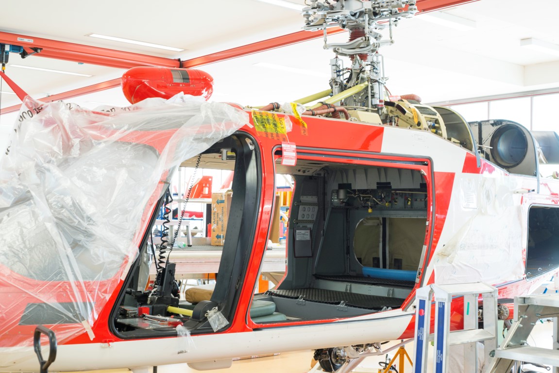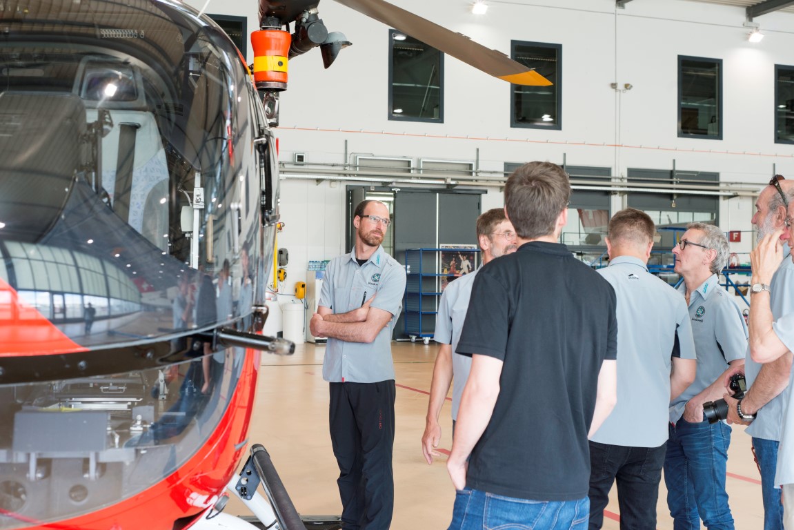 Im Anschluss wurde der Hangar besichtigt. Dabei konnten das Innenleben eines Ambulanzjets genauer unter die Lupe genommen werden. Wir waren live bei der Wartung eines eleganten Agusta Da Vinci Helikopters dabei und staunten nicht schlecht über die Größe, der im Hangar thronenden EC 145.
